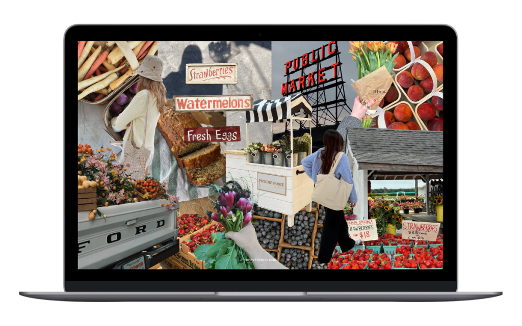 I’m a sucker for our aesthetic collage wallpapers every month, and this May aesthetic tech background is no exception. It’s the perfect way to set your intentions with a vision board of exactly what you want your month to look like. So if you need me, I’ll be at the farmer’s market (digitally and IRL) for the next four weeks in some of my cutest warm-weather outfits, and reading a book in the park immediately after.