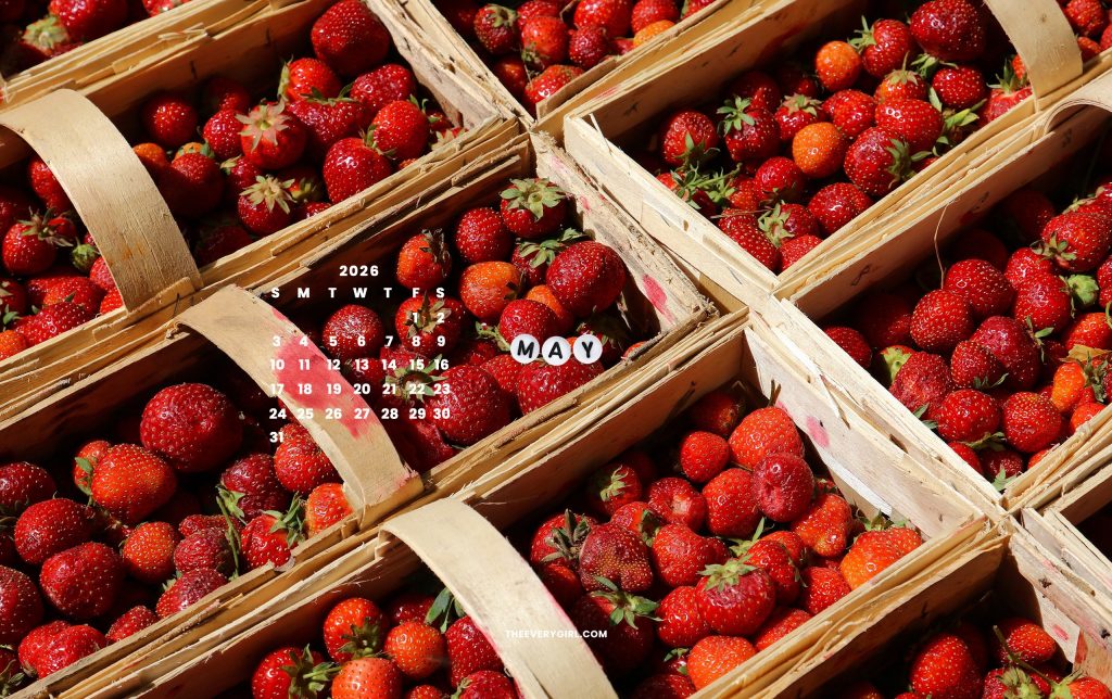 Find me lacing up my sneakers, putting on a bright blush, and hitting the farmers market every weekend in May. I’ll be there picking out local produce, wearing a Pinterest-inspired outfit, and talking to strangers until closing time. I love the bright farmer’s market produce on this free downloadable May background, and the bracelet charms on it that spell out “May” even more. If you’re into crafty hobbies and love strawberries, this cute phone wallpaper for May was basically made for you.