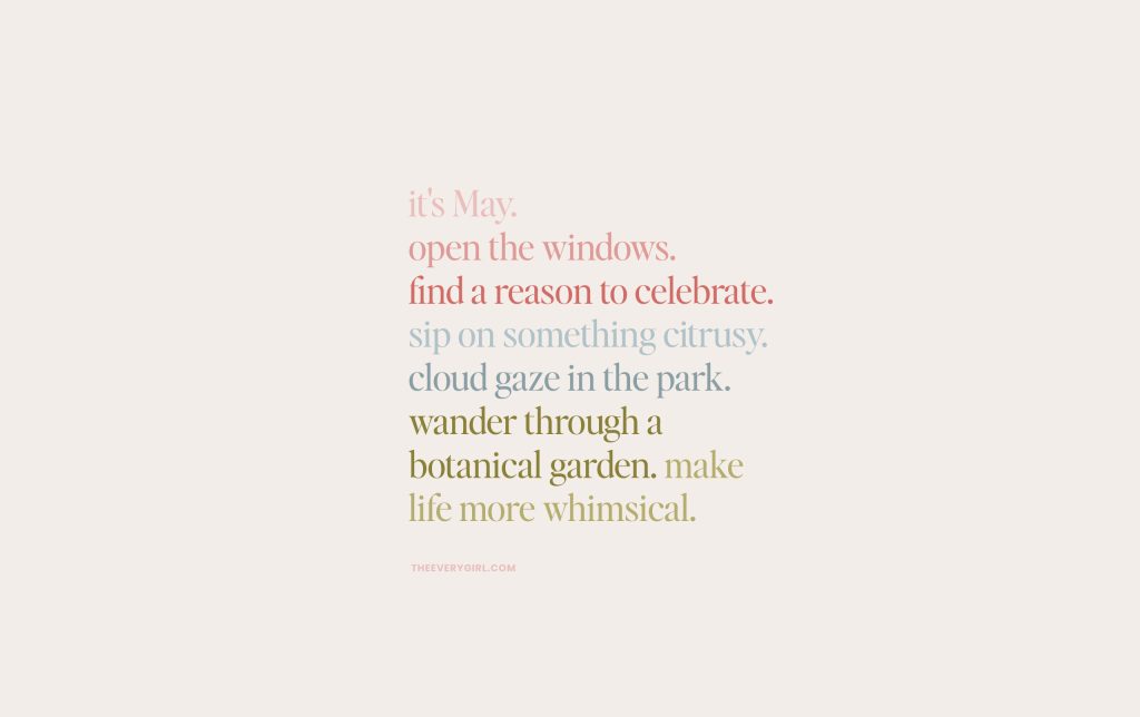 In adulthood, May feels like a filler month—not quite spring, not quite summer. But once upon a time, we spent the entire year counting down until May. It was when school was finally out, and our days became packed with seasonal activities. You had the freedom to slow down and enjoy the fact that the weather is nice enough to go outside at night with only a light jacket, the flowers you prayed for on all those rainy days are actually here, and you could stay up all night enjoying your feel-good hobbies without the consequence of an early alarm. Sadly, we don’t have a three-month break on the horizon anymore, but I’m determined to bring that slower pace and magical energy back to this time of the year. My first step? Adorning all my tech with The Everygirl’s 2026 May tech backgrounds.