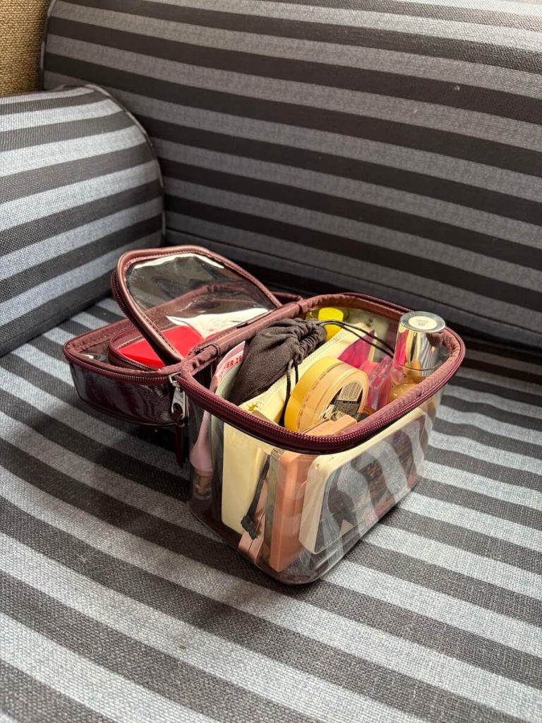 If you’re on the hunt for a TSA-approved toiletry bag, definitely give the Calpak Clear Train Case some consideration. As soon as I saw it on Calpak’s website, I knew I wanted to try it out. I don’t have any other train-case style toiletry bags, so I like having this option for when I want my products to be able to stand up. I always have this packed to the brim, and I stay in awe over how much it can fit.